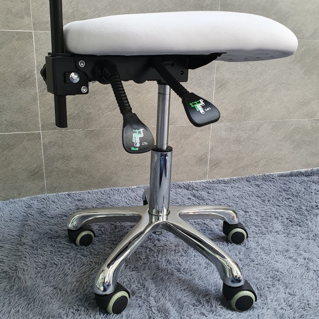 Đây là mẫu ghế cao cấp với lưng ghế cao và có thể điều chỉnh để phù hợp với vóc dáng của người ngồi giúp bảo vệ người thợ phun xăm không bị ảnh hưởng do việc ngồi quá nhiều trong khi làm.